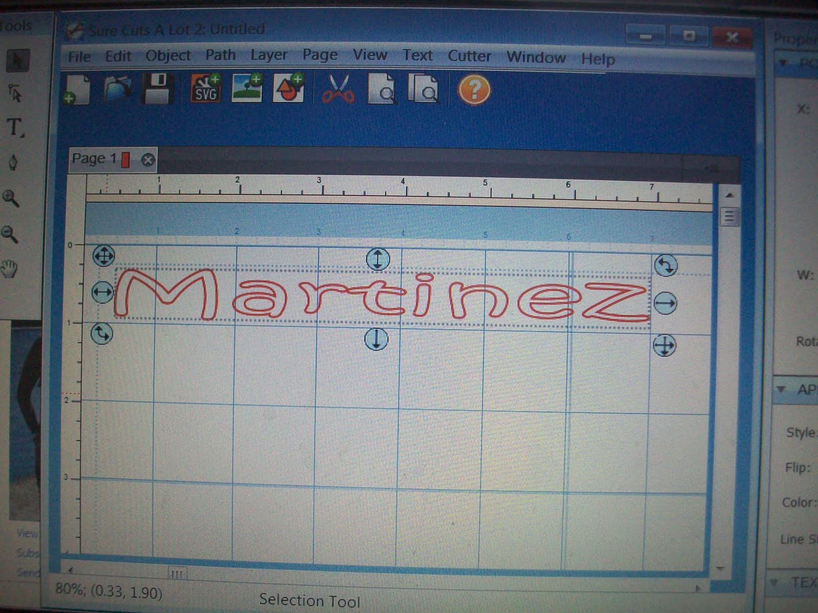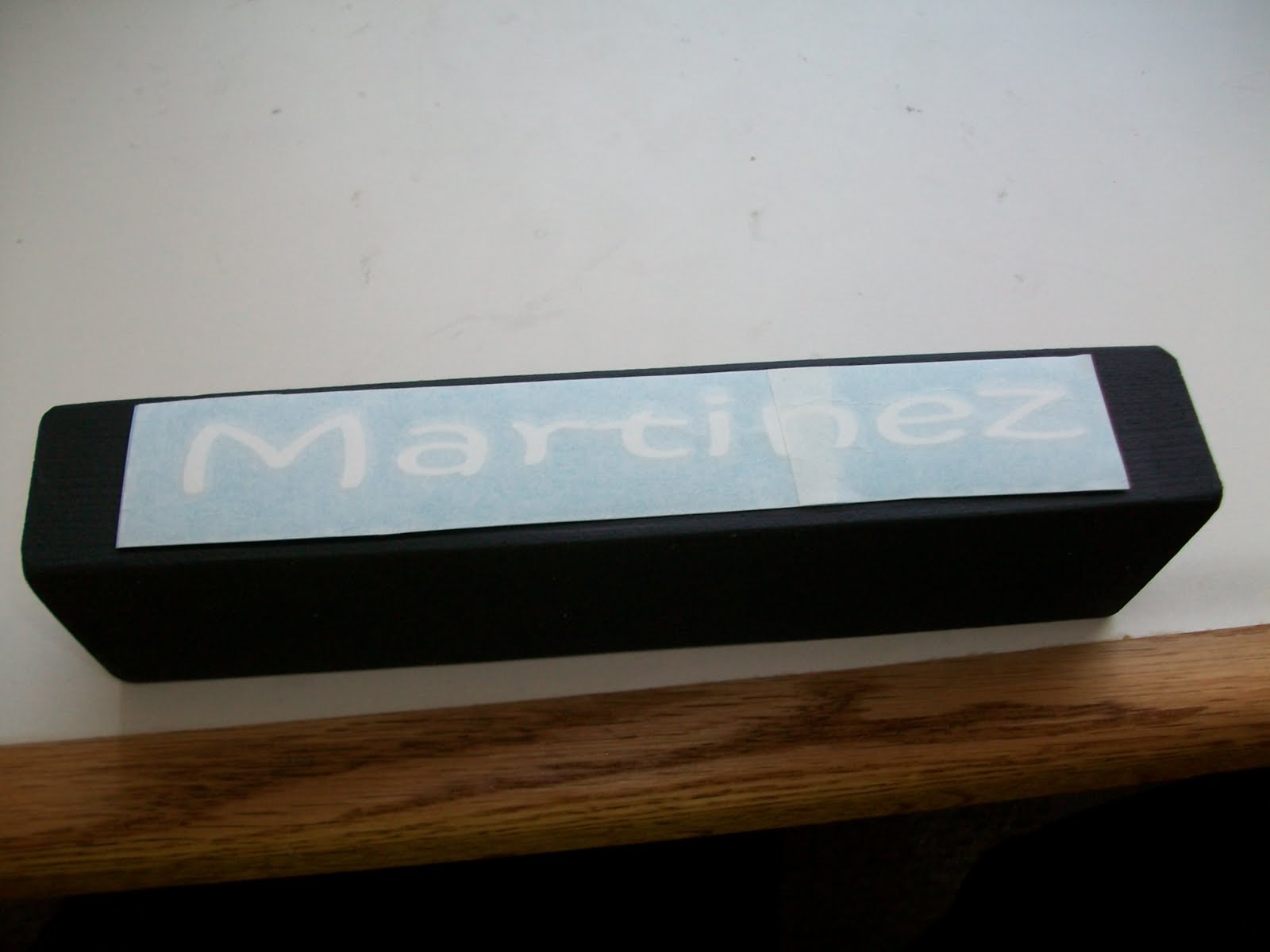 So I started by printing out her last name on my Cricut in vinyl. I used my Sure Cuts Alot program to make it the right size. {I love this program. If you want to learn more about it go
